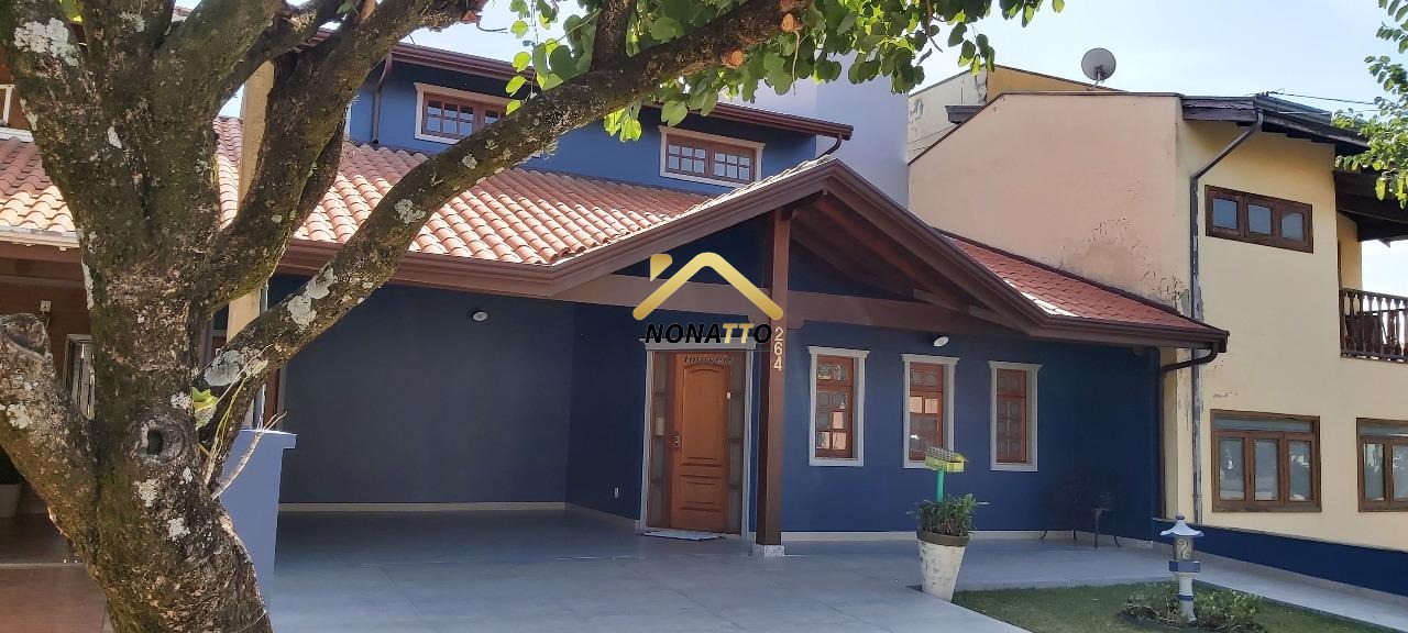 Casa com 3 suítes, sala de estar, sala de jantar, cozinha, escritório, área gourmet, churrasqueira, wc social, área de serviço e 4 vagas de garagem.
