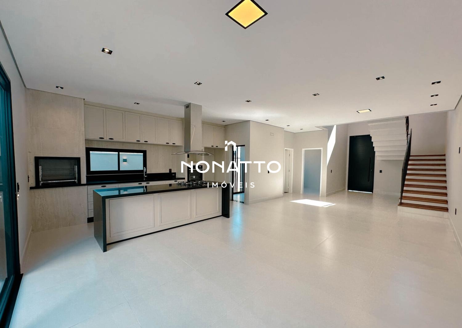 Lindo e moderno projeto de sobrado em construção com 03 suítes, sala de estar, sala de jantar, cozinha integrada, escritório, área gourmet, varanda, lavanderia e 4 vagas de garagem.
