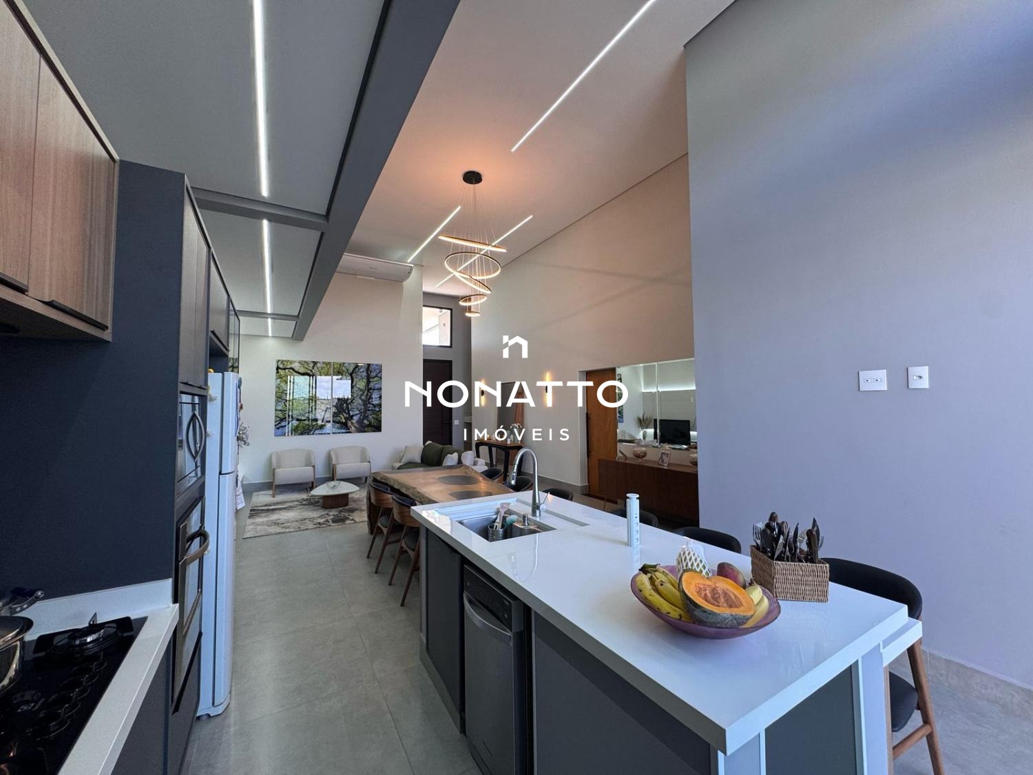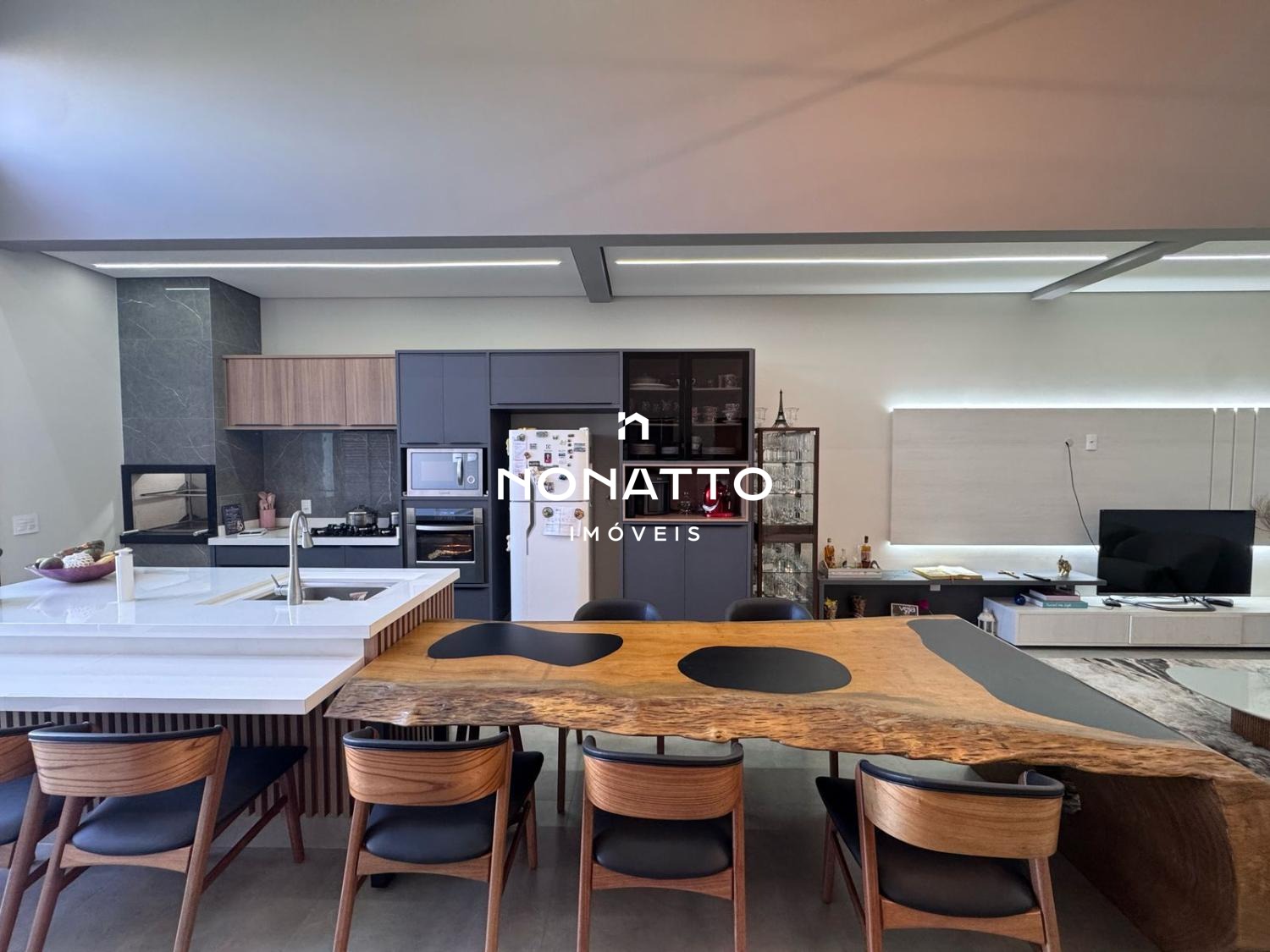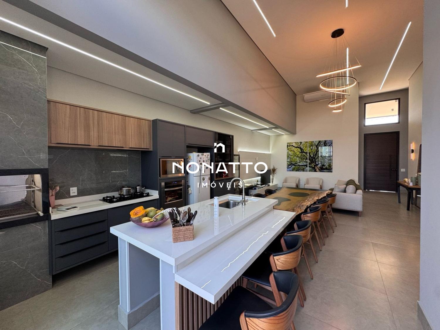 - Sala de estar, jantar e cozinha gourmet integrados
