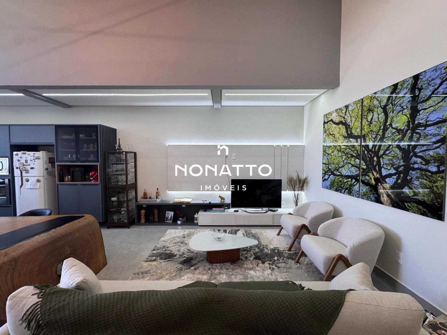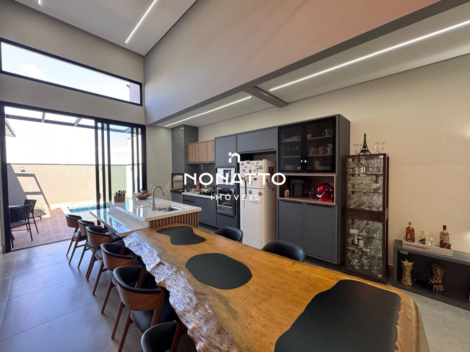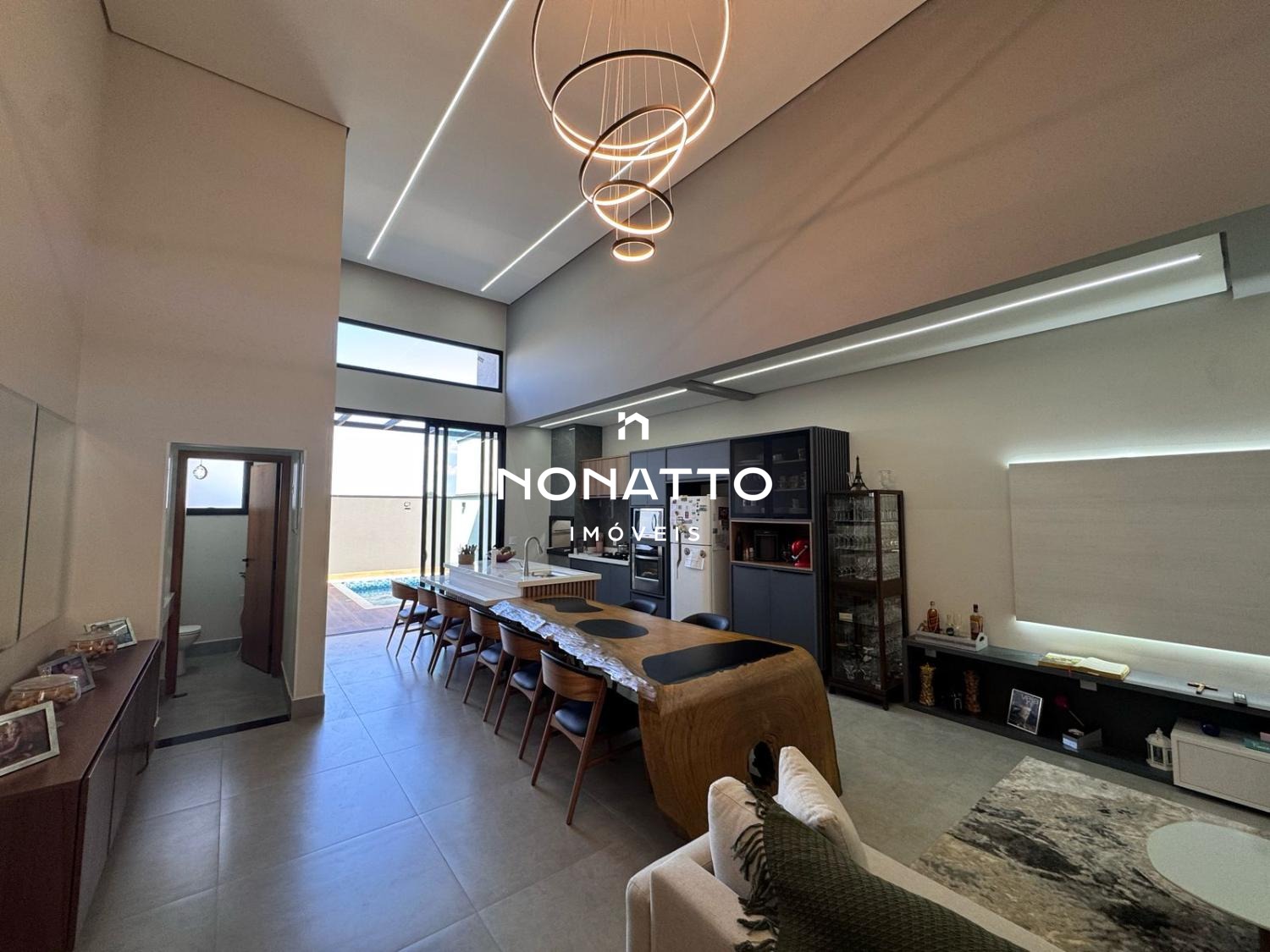 - Sala de estar, jantar e cozinha gourmet integrados