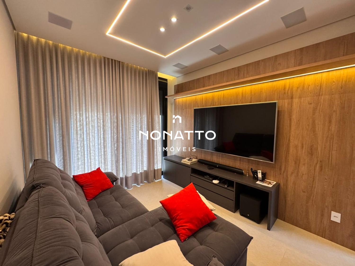 - Sala de estar, jantar, cozinha e área gourmet 100% integrados